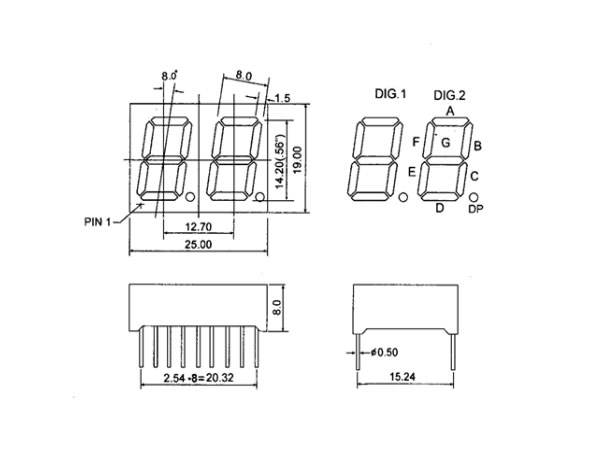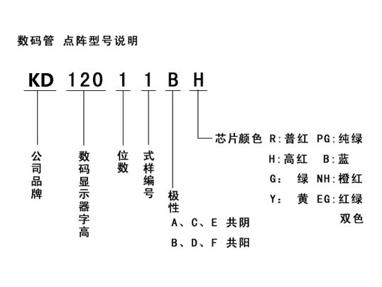 •    數碼管點陣型號說明